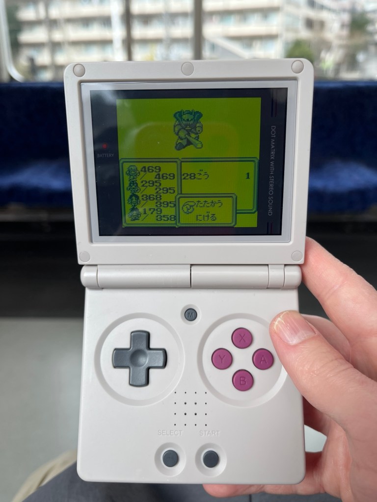 In only playing SaGa in transit, in limina,l it captured the dream. SaGa was an RPG like Final Fantasy or Dragon Quest or Momotarou Densetsu, but on the new Game Boy. The game itself has very snappy save anywhere that could hurt you if you aren’t paying attention. Or instead are noticing it is your stop and you need to get off the train now.